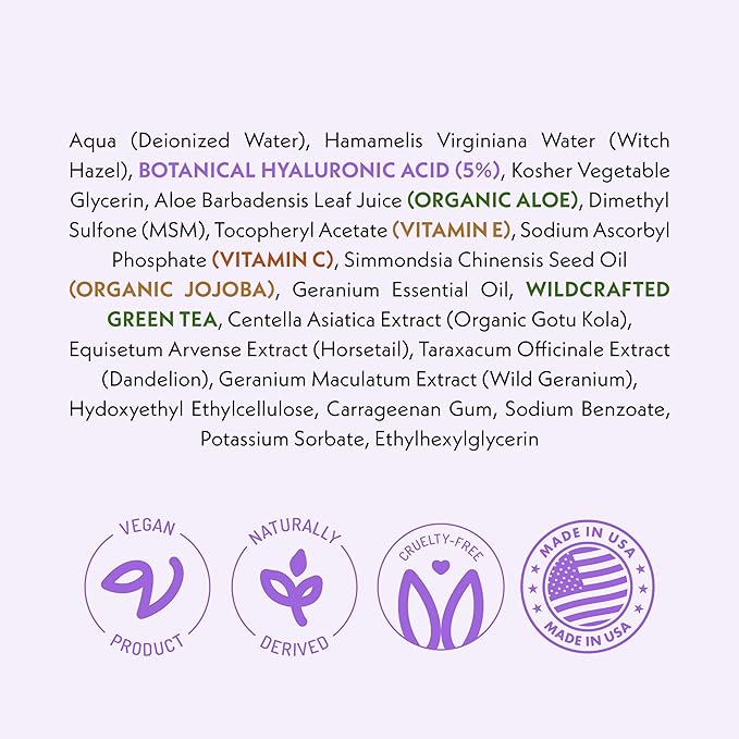 - Replenish & Restore lost moisture, look of firmness & elasticity with our hyaluronic acid facial serum! Our unique formula contains clean, effective and trusted ingredients such as vitamin E, vitamin C, green tea, organic jojoba oil and organic aloe.