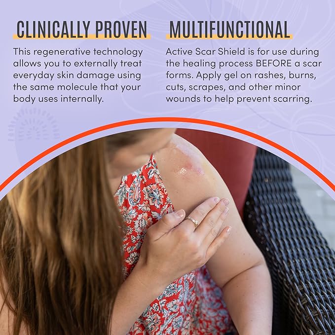 - SAFE FOR USE AS YOU HEAL: Many scar treatments say their products are not safe for use on open wounds. With ACTIVE Scar Shield (natural scar gel), you can apply directly to cuts, scratches, and more during the healing process.