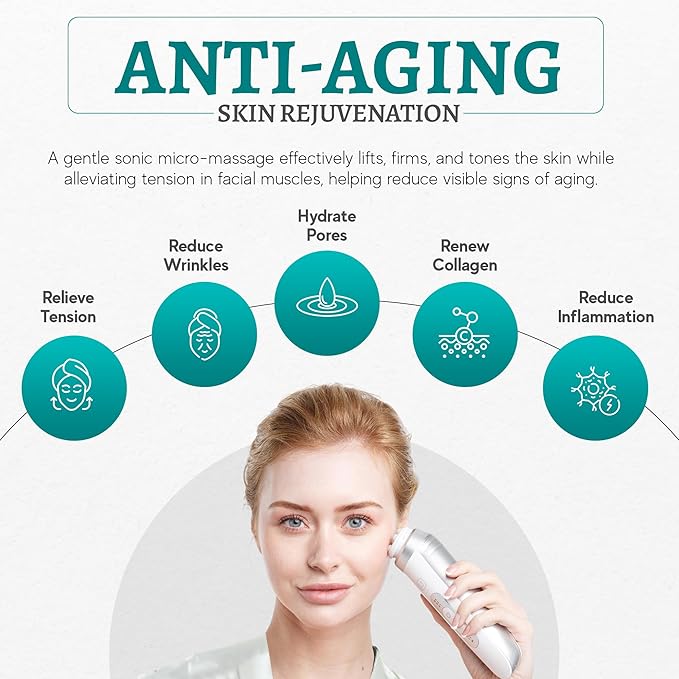 - Face Massage - The Radiant Pro’s sonic micro-massage effectively lifts, firms, and tones the skin while alleviating tension in facial muscles. This contributes to a reduction in visible signs of aging and inflammation.