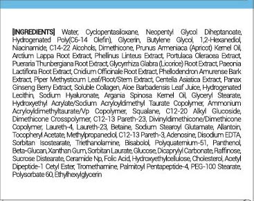 - Active Ingredients : allantoin,glycerin,licorice,niacinamide