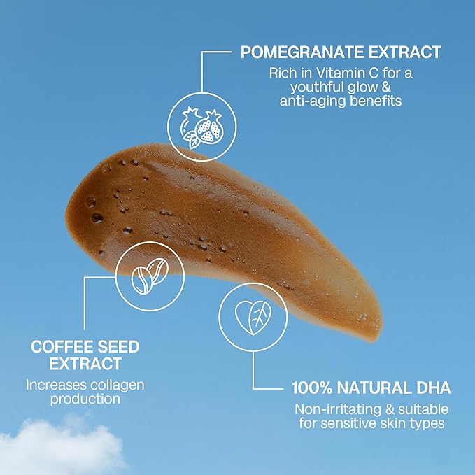 - ๐ก๐ผ๐๐ฟ๐ถ๐๐ต๐ถ๐ป๐ด ๐๐ธ๐ถ๐ป๐ฐ๐ฎ๐ฟ๐ฒ ๐ฏ๐ฒ๐ป๐ฒ๐ณ๐ถ๐๐: Our tanning mousse is infused with natural DHA and enriched with skin-loving ingredients, including chamomile extract, coffee seed extract, and pomegranate extract. This delivers a flawless tan and also nourishes and conditions your skin.