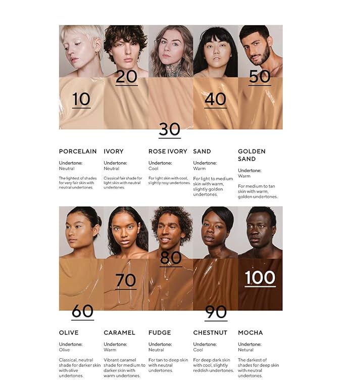 - A MINERAL FOUNDATION that adjusts to your skin’s unique tone and texture for a naturally dewy, seamless finish with a veil of skin-like coverage that feels light as air yet covers imperfections.