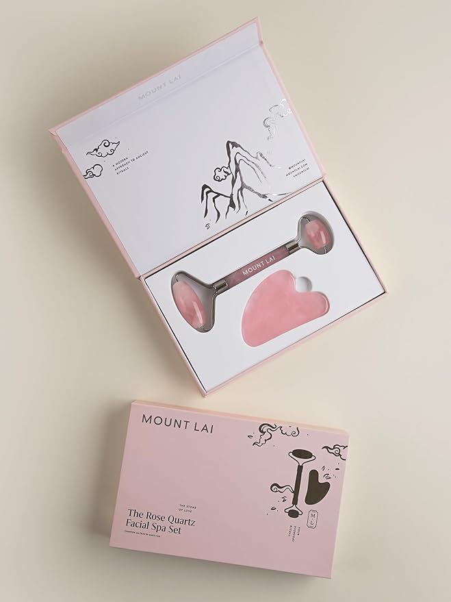 Mount Lai Rose Quartz Gua Sha Facial Tools, Pink Quartz Gua Sha Facial Tools Set and Roller, Guasha Tool for Face to Relieve Muscle Tension and Reduce Puffiness, Anti Aging Skin Care Sets for Women