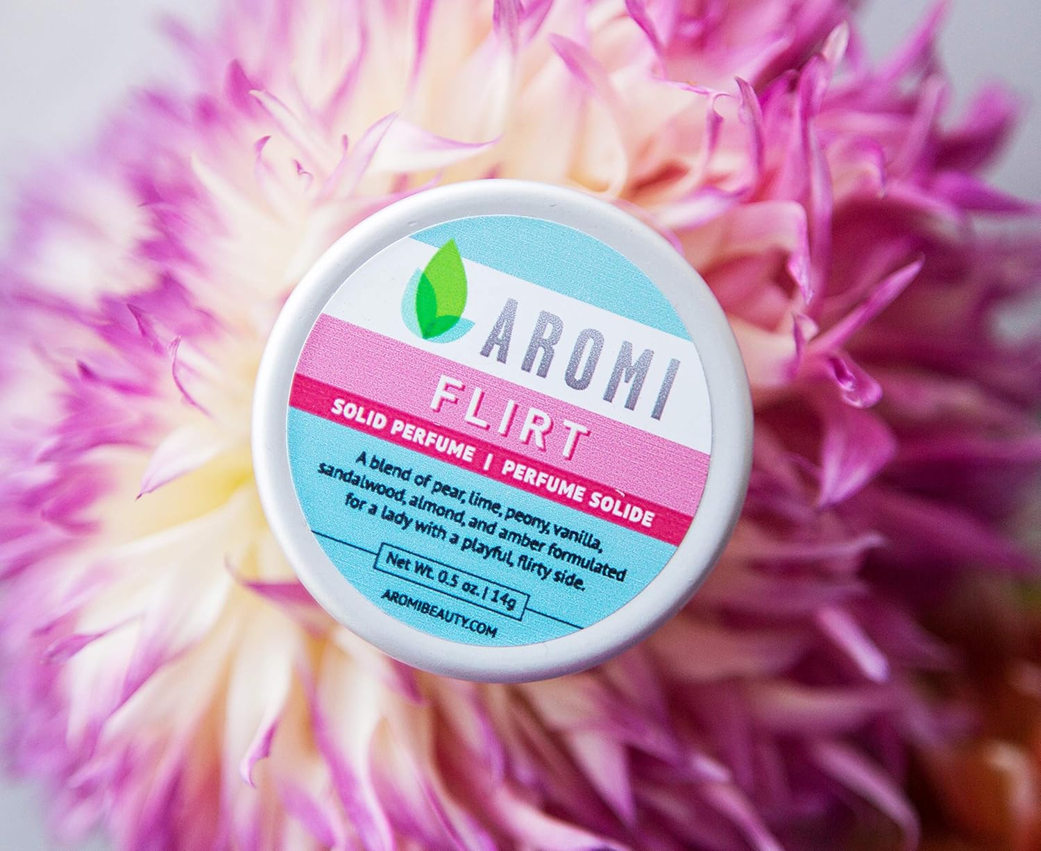 Aromi Flirt Solid Perfume | Floral, Woodsy Fragrance, Vegan, Cruelty-free, Almond, Peony, Vanilla Scent, Wax-Based, Women's Gift, Travel, Handmade (Flirt)