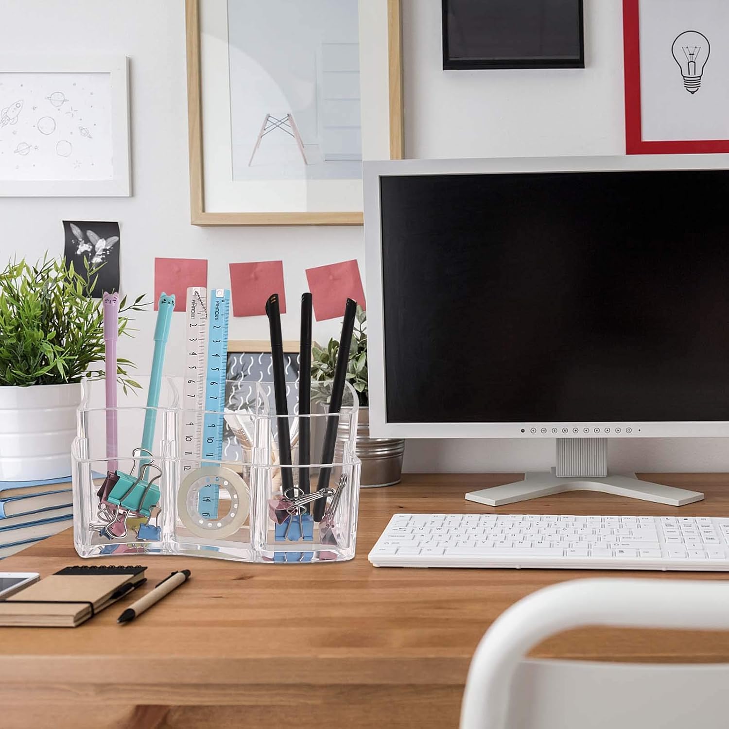 - 6-compartments makeup brush organizer is curved design for counter top, vanity