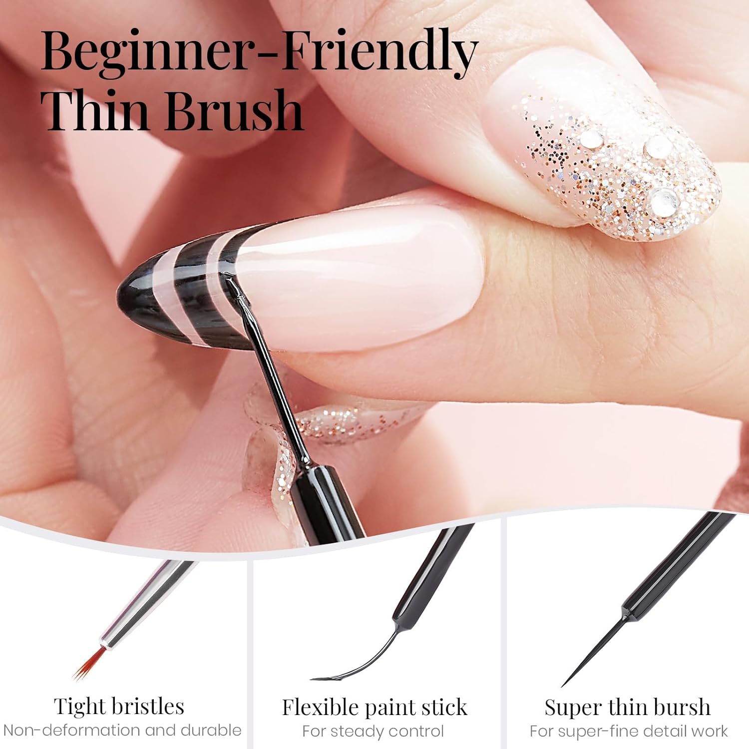 - Application: Just make sure you wipe your brush otherwise you’ll get a big drop. No need to change and wash clean the drawing liner pen brush when doing the nail art. Allowing you to have salon-quality nails at home for multiple seasons.