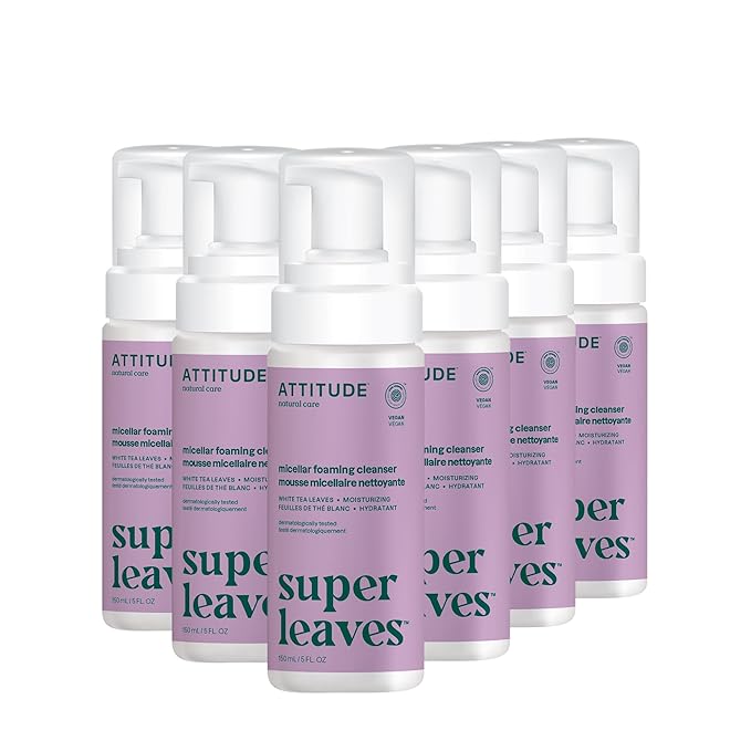 ATTITUDE Micellar Foaming Facial Cleanser, EWG Verified, Dermatologically Tested, Plant and Mineral-Based, Vegan, Coconut & Wildberries, 5 Fl Oz (Pack of 6)