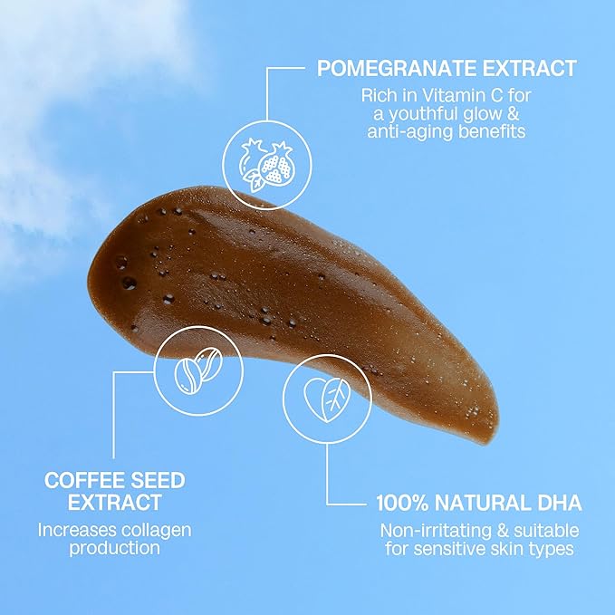 - ๐๐๐ฑ๐ฟ๐ฎ๐๐ถ๐ป๐ด ๐๐ผ๐ฟ๐บ๐๐น๐ฎ ๐๐ผ๐ฟ ๐ฆ๐ผ๐ณ๐, ๐ ๐ผ๐ถ๐๐๐๐ฟ๐ถ๐๐ฒ๐ฑ: Skin Our self tanning mousse doubles as skincare, addressing dry skin concerns with premium hydrating ingredients. Formulated with soothing chamomile extract to calm sensitivity sunless tanner , antioxidant-rich coffee seed extract to fight free radicals, and rejuvenating pomegranate extract for intense moisture.