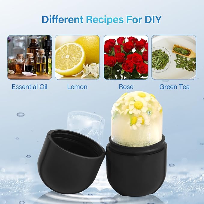- 3.【Great Enjoyment】: To really enhance the skin effect, you can use your creativity and customize the formula according to your specific skin needs, such as lemonade for whitening, green tea for inflammation, cucumber water for reducing swelling, and coconut for improving skin Milk. You can use a juicer to squeeze them into juice, then add water, essential oils, and roses to the ice roller, wait 3-4 hours, and then you can use it.