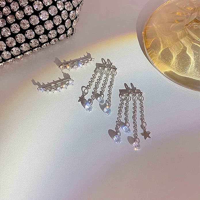 - Silver Star Tassel Earrings made of good quality alloy and crystal,comfortable to wear.