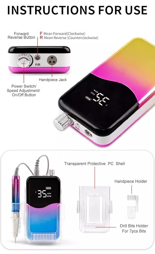 - Easy to use with Tailored Speed & Superior Control: Our nail drills come with adjustable speed gears, portable design, and long lasting battery. This portable nail drill is an essential tool for every respectable salon. Handle everything from gel polish removal to acrylic nail prep with ease.
