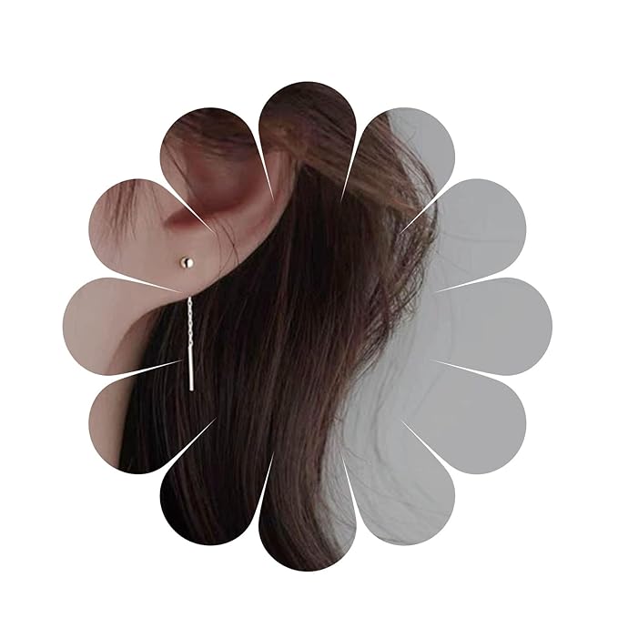 Boho Bar Threader Earrings Silver Line Earrings String Drop Dangle Earrings Pull Through Long Chain Earrings Jewelry for Women and Girls