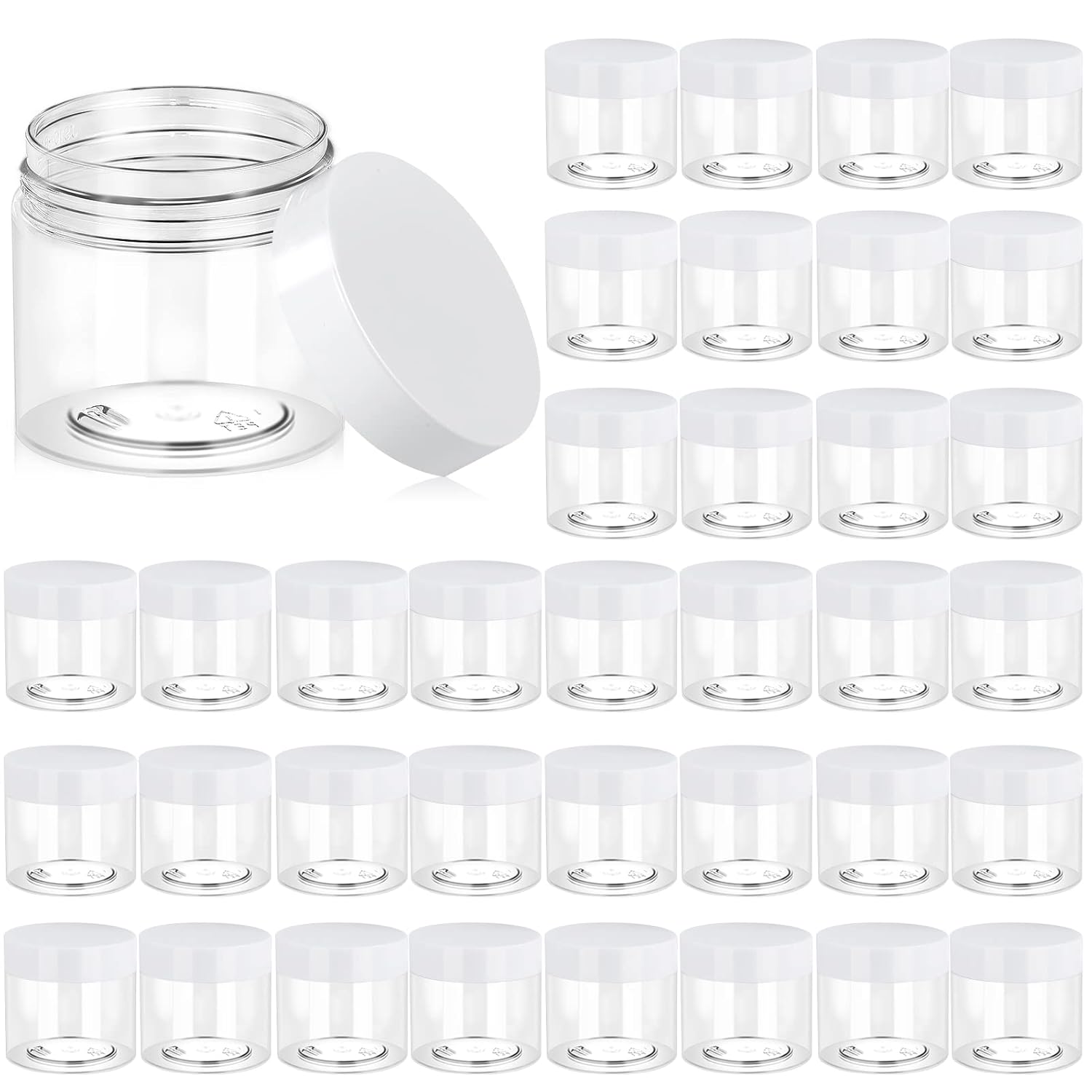 Eternal Moment 36 Pack 6 OZ Plastic Jars Round Clear Cosmetic Container Jars with White Lids, Perfect for Lotion, Slime,Cream, Ointments, Makeup, Eye Shadow, Samples, Pot, Travel Storage
