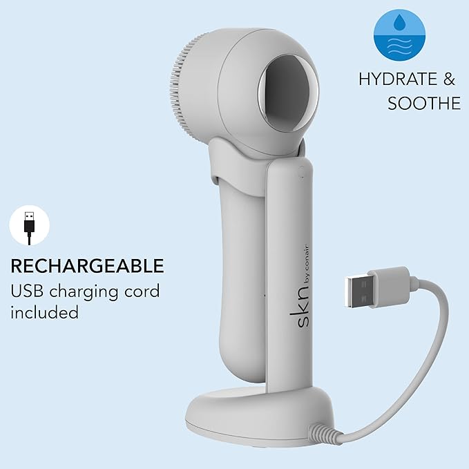 skn by conair Cryotherapy Advanced Facial Cleansing Brush, Featuring Ultra-Hygienic Silicone Brush Head and Cool Plate to Help Soothe Inflammation and Reduce Puffiness