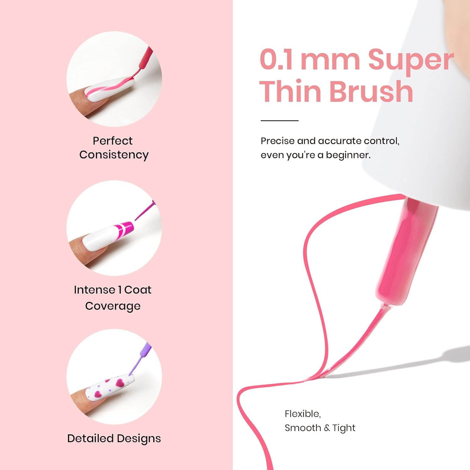beetles Pink 12 Colors Nail Art Gel Liner, Summer Blue White Glitter Gel Nail Polish Painted Soak Off Uv Lamp Art Nails Red Yellow for Thin French Line Nails Manicure Gift for Women