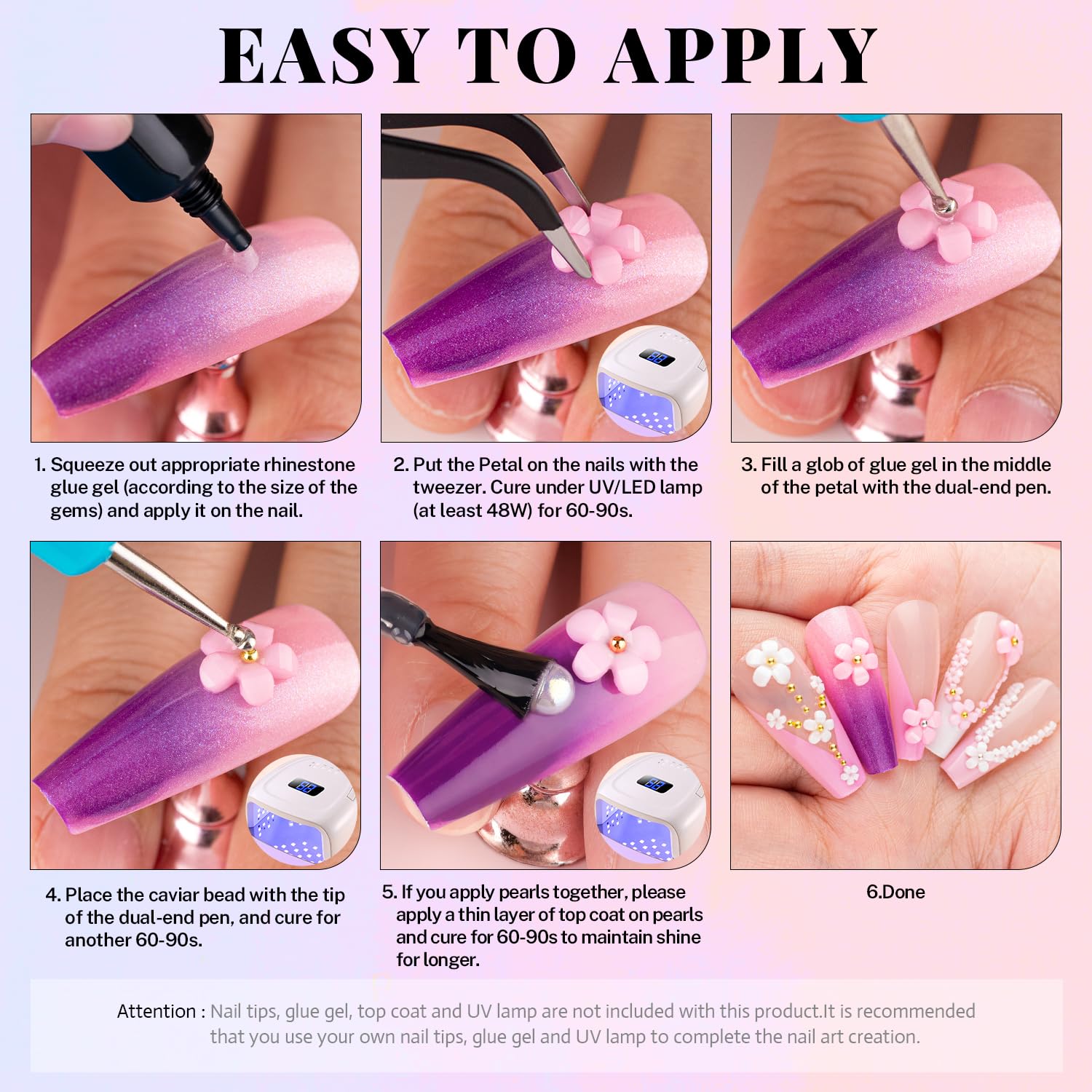 - đź’ŽRHINESTONE DOTTING PICKER TOOLS -- The wide-head brush end of the dual-end dotting tool makes it easy to apply a large amount of glue to the nail surface at once, while the other mini dotting end is great for detailed drawing. Picker pen can help you handily pick up small flowers and metal beads, while tweezer is a better choice for big flowers and charms. The craftbeads are not self-adhesive and glue-needed. (Glue is not included.)