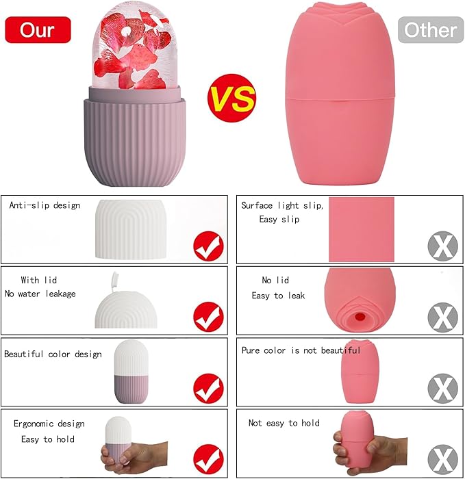 - ❄️ HIGH-QUALITY: This ice roller for face is made of high-quality silicone material, which is repeatable and durable. Small and light design, ergonomic hand design is easy to grasp, ice roller head can slide on the skin,It is also easy to carry.