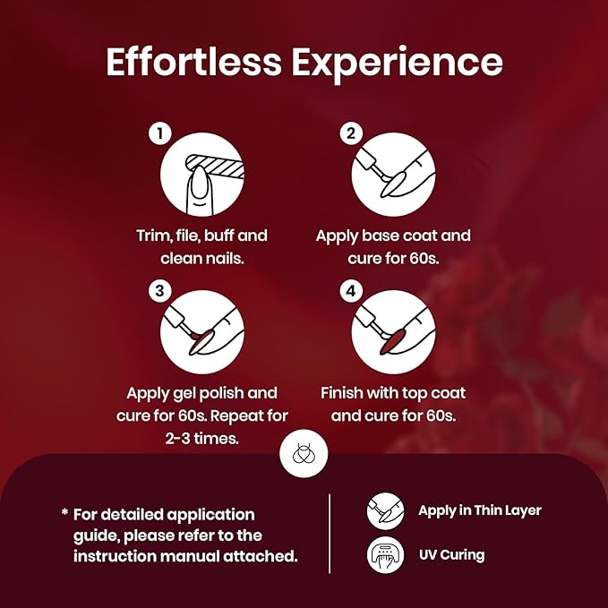 - Easy Application and Good Tenacity: This series of red gel nail polish set is long-lasting for 28+ days with a perfect shine under proper application - with base gel top coat throughout the full application process.