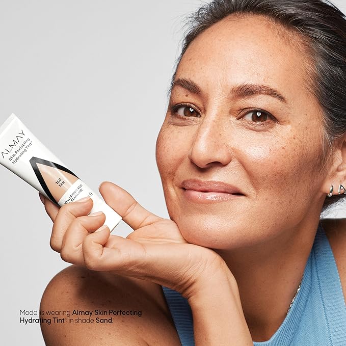 Almay Hydrating Liquid Foundation Tint, Lightweight with Light Coverage, Naturally Dewy Finish, Hypoallergenic, Dermatologist TestedFragrance Free, 130 Sand, 0.94 fl oz.