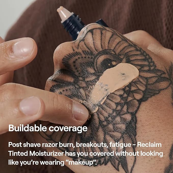 - TINTED MOISTURIZER FOR MEN: The ultimate 2 in 1, Reclaim Tinted Moisturizer blends easily into the skin to even out skin tone and provide a natural matte finish with buildable coverage while hydrating and detoxing the skin. Just like a bb cream for men, our tinted moisturizer is buildable so you can get the light coverage or medium coverage you desire