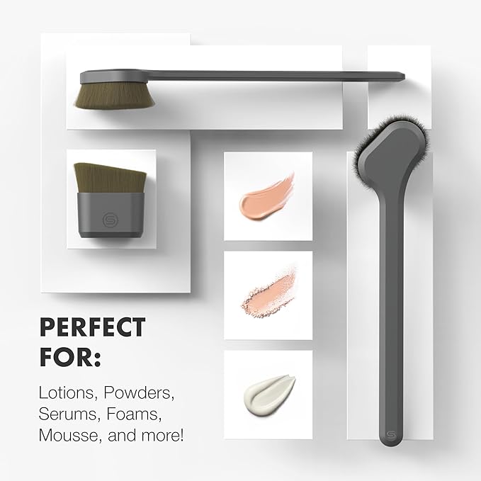 - Skin-Friendly & Suitable for All Types: Crafted for sensitive skin, our brushes offer a hypoallergenic application of bronzer, sunscreen, and other SPFs. These luxurious, skin-friendly applicators provide a soft, non-absorbent surface for a seamless self-tanner experience, making them a superior choice over traditional bronzing powder puffs or spray methods.