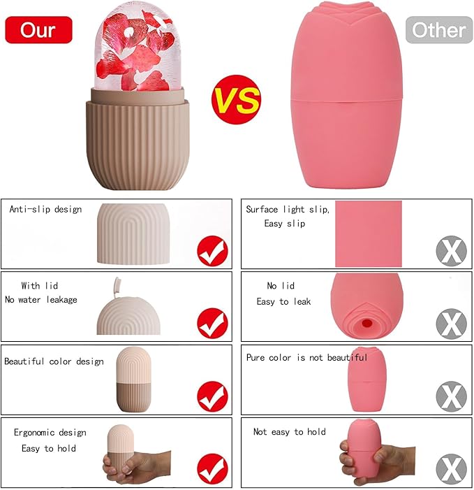 - ❄️ HIGH-QUALITY: This ice roller for face is made of high-quality silicone material, which is repeatable and durable. Small and light design, ergonomic hand design is easy to grasp, ice roller head can slide on the skin,It is also easy to carry.
