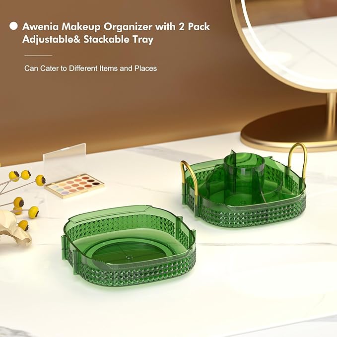 - Stackable &Adjustable:➤The lazy susan organizer is stackable if you get more Awenia clear bathroom countertop organizer and help you save 80% space.With separated top and raise,thicken edges, you can put long brushes,makeup bottle, don’t worry about falling. You can combine three adjustment plates of make up organizers according to your needs.