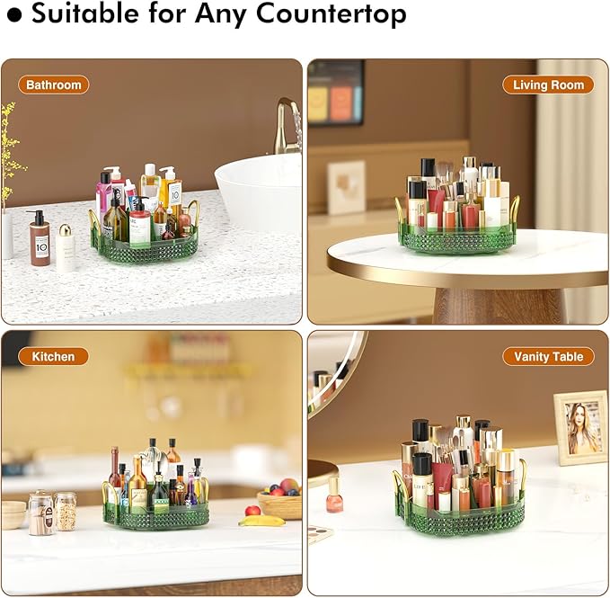 Awenia Rotating Makeup Organizer 360, Stackable Adjustable Large Capacity Cosmetic Storage Unit,Dresser Bathroom Kitchen Countertop Organizer with Metal Handle, Plus Size (Gem Green, 1 Tier)