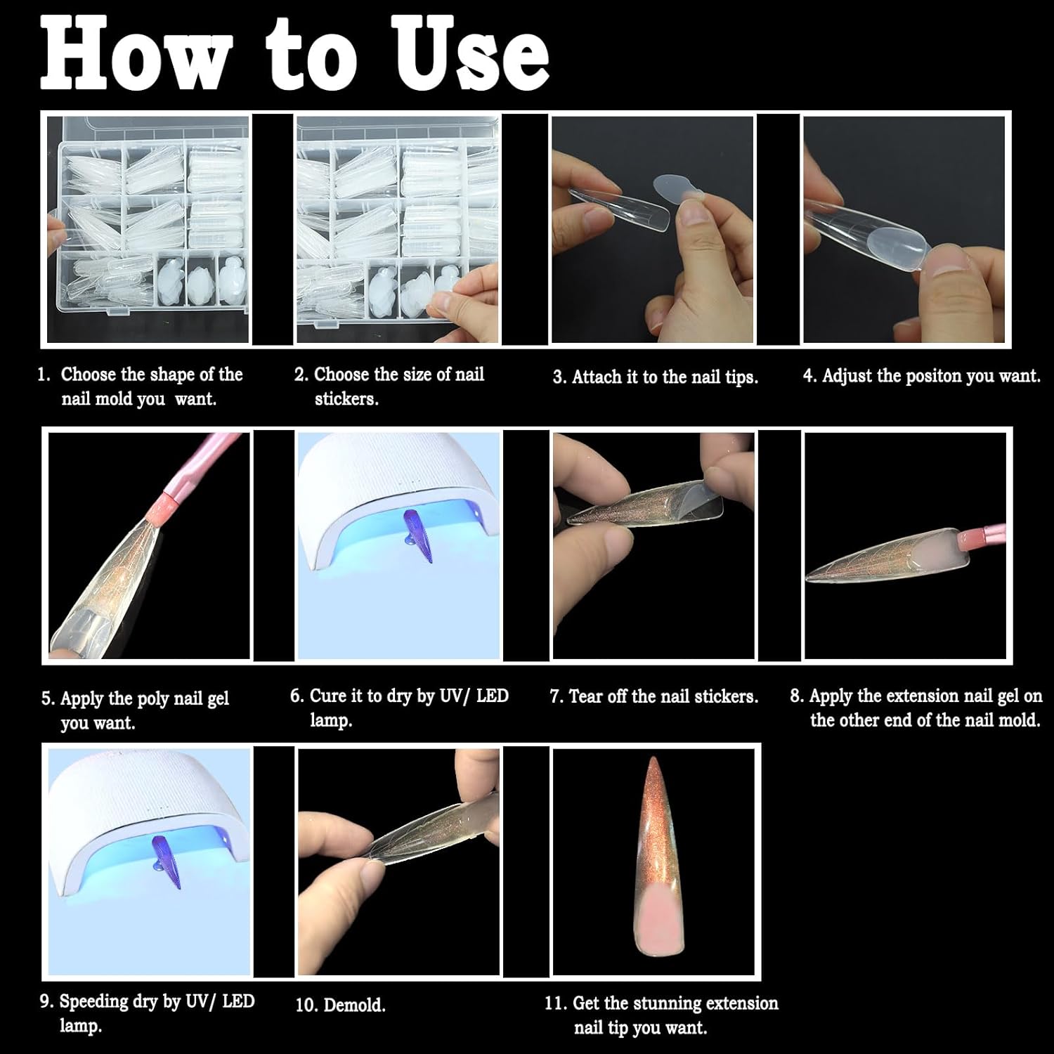 - High Quality Reusable: poly extension gel dual forms are made of high-quality ABS material, no trace, tough, which ensures its longevity and optimal performance. And the soft gelly tips is crafted to be a soft texture, silicon material, reusable and easy to tear off from the nail extension form for daily manicure operations.