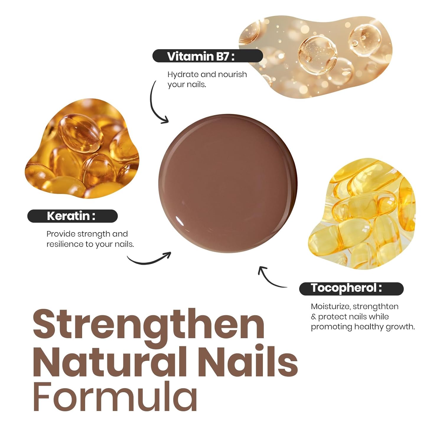 - Nail-Boosting Ingredients: Packed with keratin, vitamin B7, and tocopherol, this gel nail polish helps increase nail thickness and strength, speeding up recovery for healthier-looking nails.