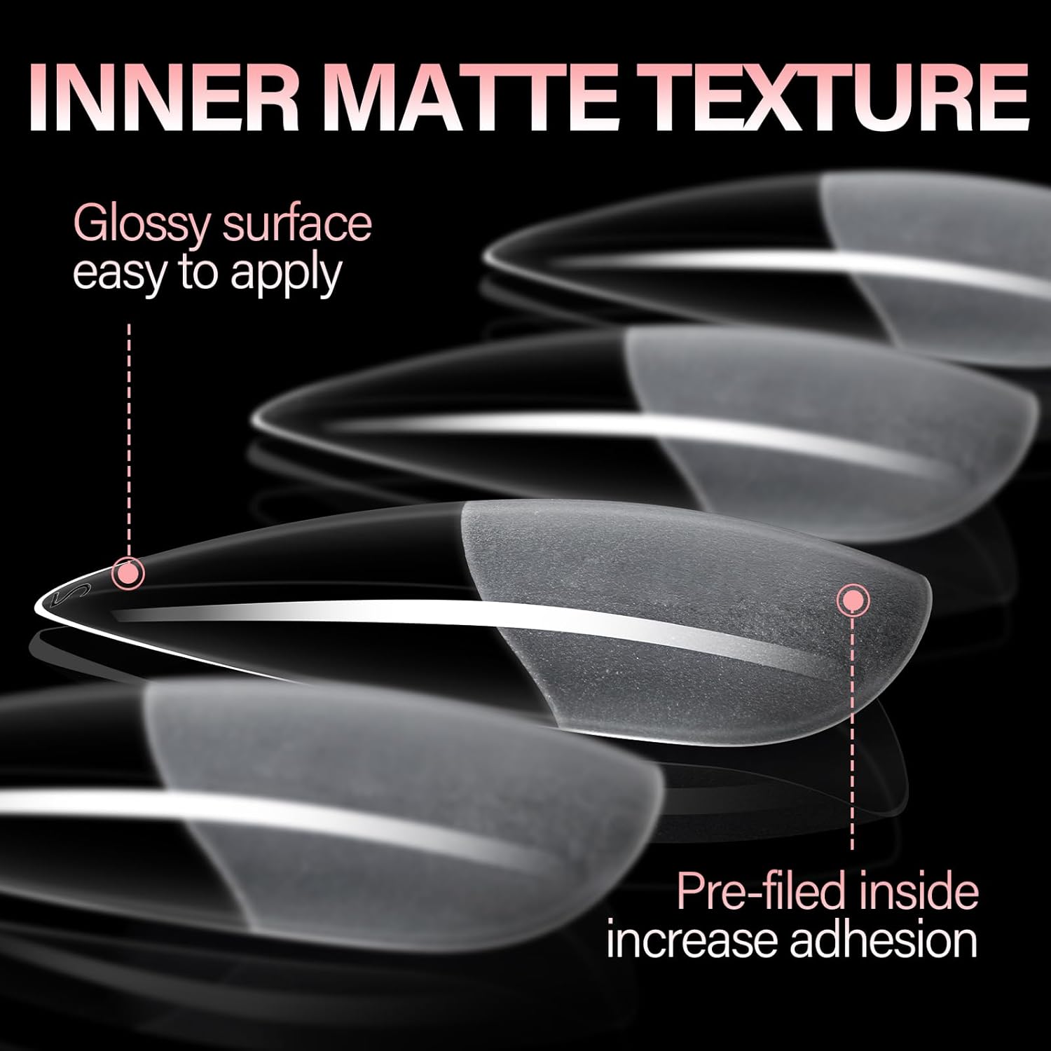 AILLSA Long Almond Nail Tips Full Cover Clear Gelly Nails Tips Half Matte Acrylic Tips Pre-Filed Fake Press on Nail Tips for Extension Home DIY Salon Manicure 216PCS 12 Sizes