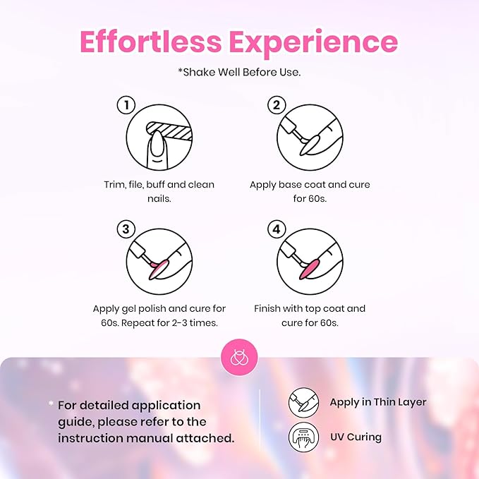 - 【28+ Days Long Lasting】: Beetles 20 colors spring gel nail polish set has very high adhesion, with hard and durable quality, good flexibility, and perfect glossy, making nails look natural and light. After using and lighting properly (requiring curing with UV/LED light for 60-90 seconds), it can maintain the color and gloss of nail art for more than 28 days.