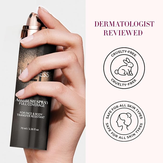 - Full Coverage Airbrush Finish: The LUMINESS Airbrush Spray Full Coverage Foundation delivers lightweight, buildable coverage for face and body, effortlessly concealing imperfections and providing a natural, airbrushed finish that lasts all day. 2.36 fl oz. Shade 020 - Fair
