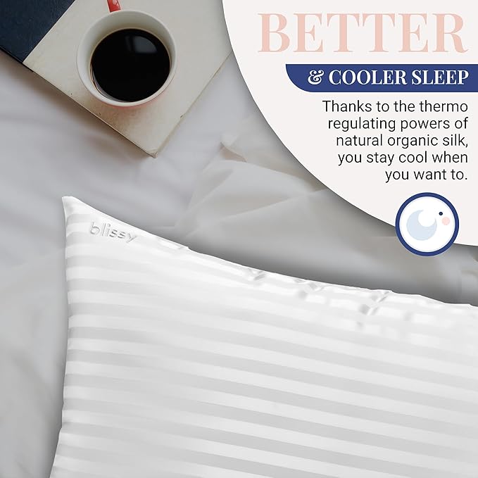 - BETTER & COOLER SLEEP: The temperature regulating properties of the Blissy silk pillowcase allow you to keep cool at all times during the night without the discomfort associated with fluctuating temperature and the constant tossing and turning for a restful night sleep.