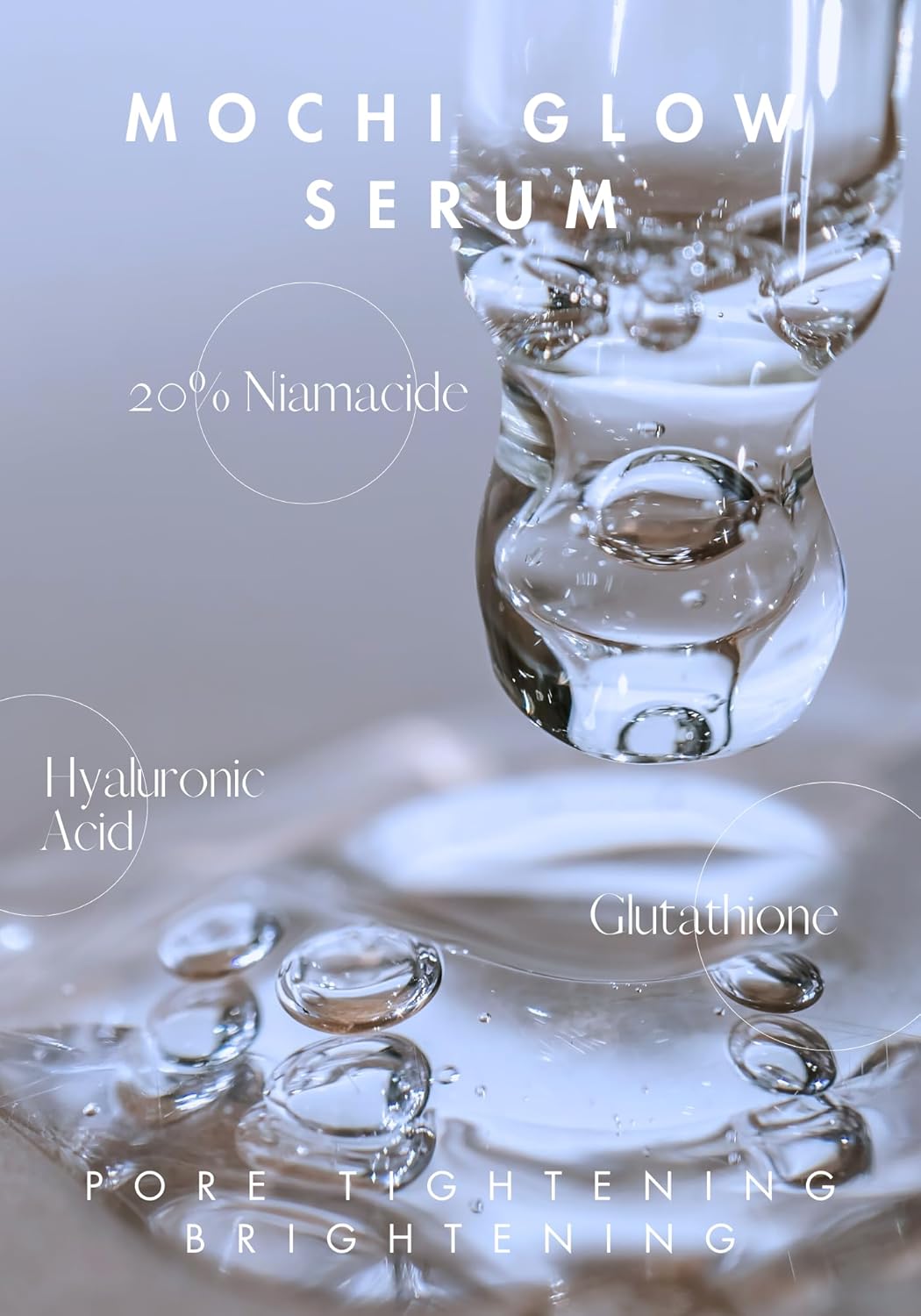 NOTHING FITS BUT Mochi Glow 20% Niacinamide Serum for Face, Pore Tightening & Brightening Skin Serum with Hyaluronic Acid & Glutathione for Dark Spots & Fine Lines, Korean Skincare (50ml/1.7fl.oz.)