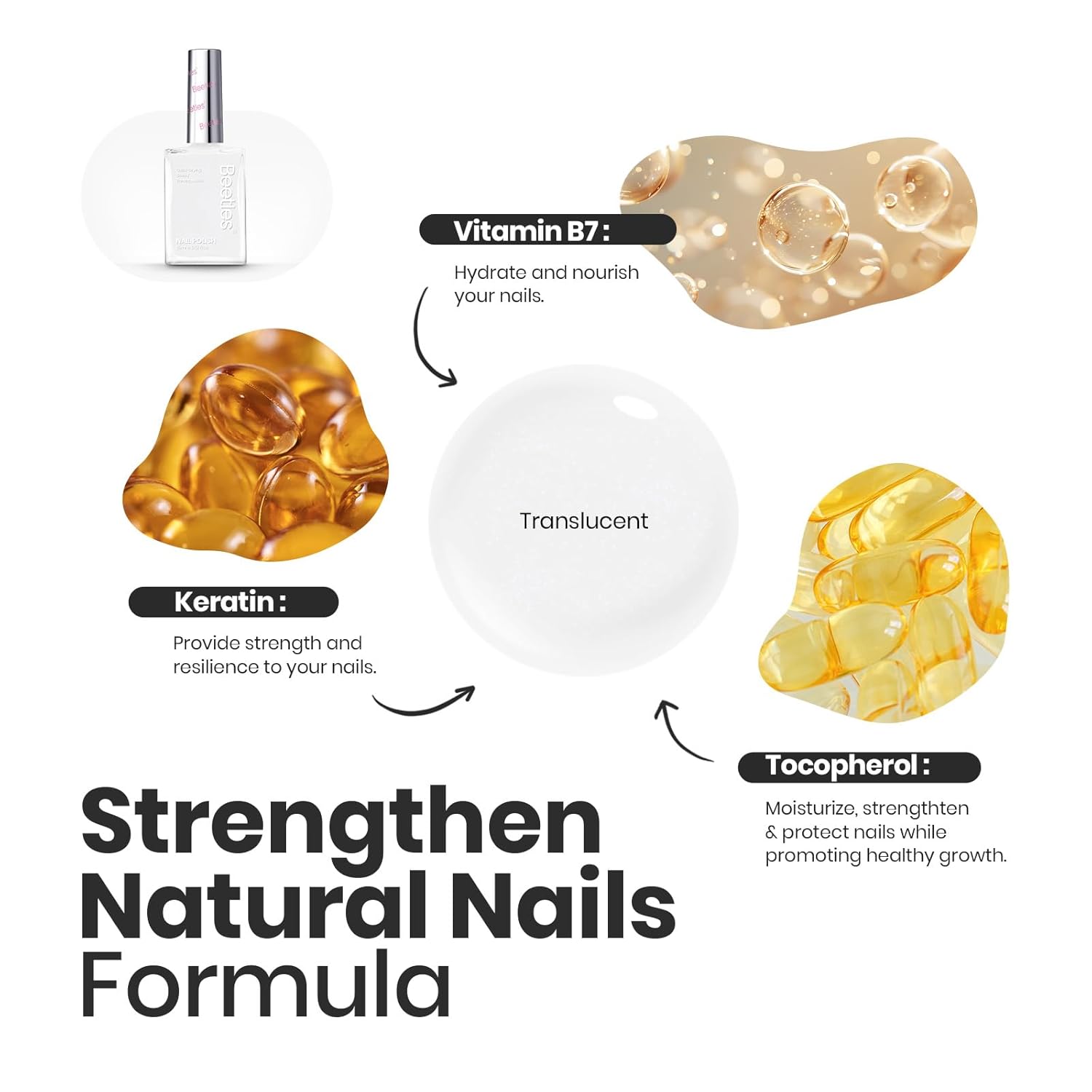 - 【Color and Strengthener 2 in 1】Beetles Milky White Nail Polish with 2 in 1 Base Top Coat Nail Polish Set is suitable for strengthening and growing nails after removing nail art. The milky white nail polish as a ridges filling can smooth the defects on the surface of nails after applying, then use the 2 in 1 base top coat nail polish make your nails shiny, even, smooth, and show a natural tint color.