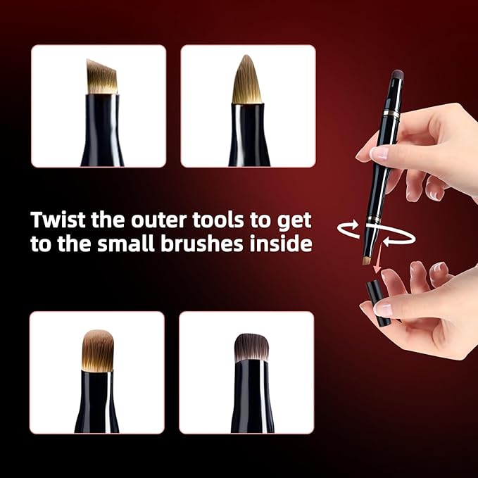 - Compact and Portable: One brush for four uses, spliced cap design to protect the bristles clean and hygienic. Compact and portable, can be put directly into the bag, does not take up space, out of the door at any time to make-up