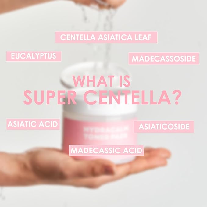 - DEEP HYDRATION & SOOTHING CARE: Infused with 40% Centella Asiatica Leaf Water and botanical extracts, these toner pads provide intense hydration while calming and revitalizing tired, stressed skin. Rich in antioxidants, they help strengthen the skin barrier and maintain long-lasting moisture.