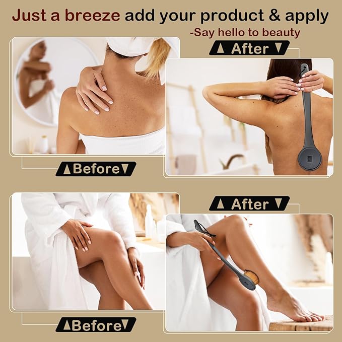 - FABULOUS BRUSH SET FOR BEAUTY: Ultra-soft, dense and high elasticity vegan bristles provide a velvety and comfy caress for the ultimate comfort efficient streak-free application. Perfect for applying lotion, sunscreen, tanning foam,self tanner or any self tan back application. Good for flawless makeup for powder, liquid, concealer, cream, blush, foundation and body shimmer powder. Only a small quantity of product on the brush is needed for the best results