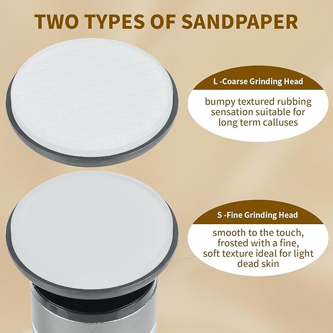 - 【New Wear-resistant Nano-glass Grinding Head】: There are two different types of grinding heads. The new nano - glass grinding head outperforms sandpaper in handling stubborn dead skin and calluses. It is wear - resistant and easy to clean, capable of evenly removing thick calluses and stubborn dry skin on the heels without damaging the skin, making it ideal for long-term personal care