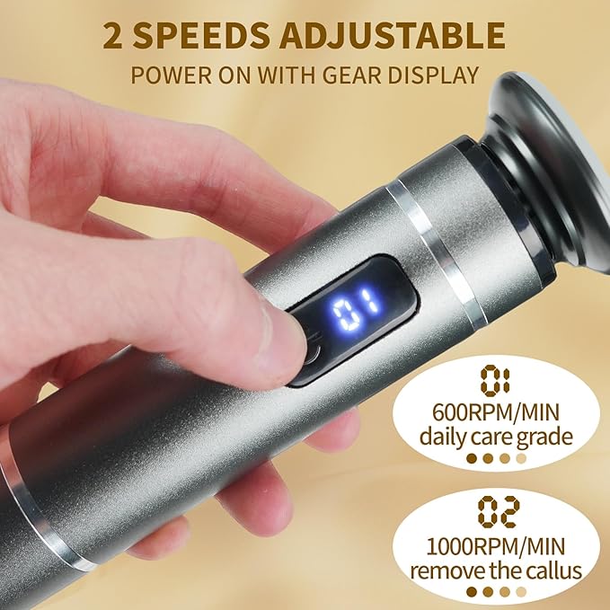 - 【Powerful Upgraded Motor and 2-speed Adjustment】: Equipped with a more powerful and stable metal - gear motor, this device won't stop running due to insufficient power or light pressure. It can effortlessly deal with stubborn calluses, dead skin, and cracked heels. With two adjustable speeds (600rpm and 1000rpm), you can select the appropriate rotation speed according to the condition of your foot skin