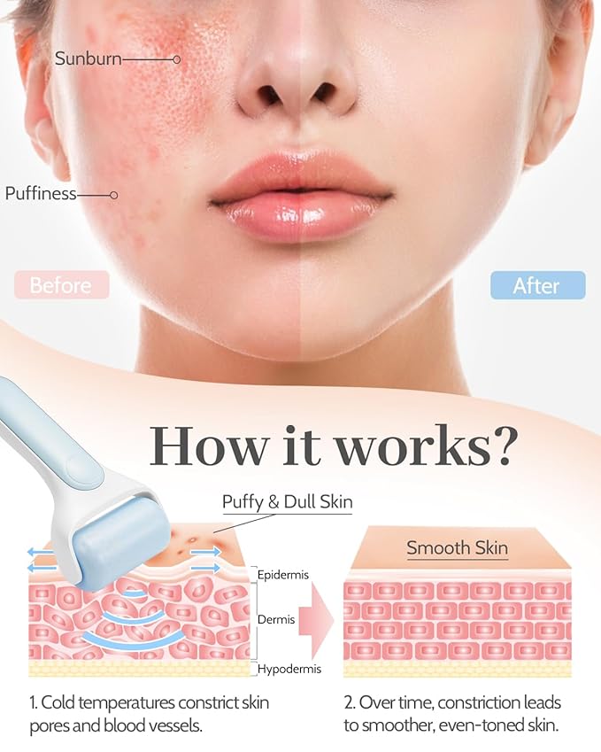 - Versatile Skincare Essential: Beyond tackling morning eye bags, its cooling effect lasts long enough for a full treatment, effectively soothing redness, swelling, and irritation on the face or body. The ice face roller boosts facial blood circulation and accelerates serum absorption, making it great for both at-home spa sessions and travel
