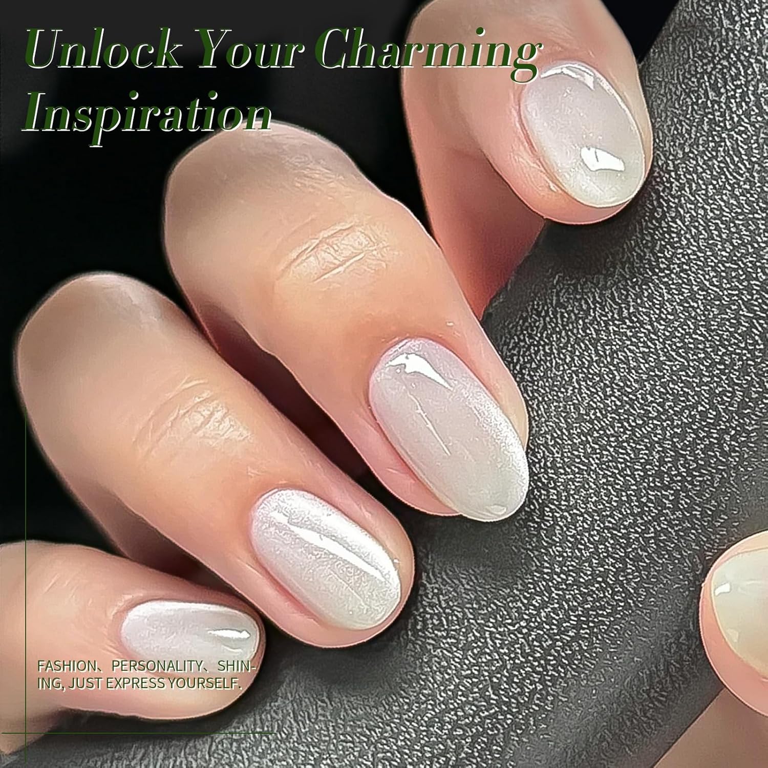 BORN PRETTY Cat Magnetic Eye Gel Nail Polish, Milky White Cat Glitter Cat Magnetic Gel Nail Polish, Holographic Magnetic Nail Polish for Nail Art Manicure Salon DIY at Home 15ML