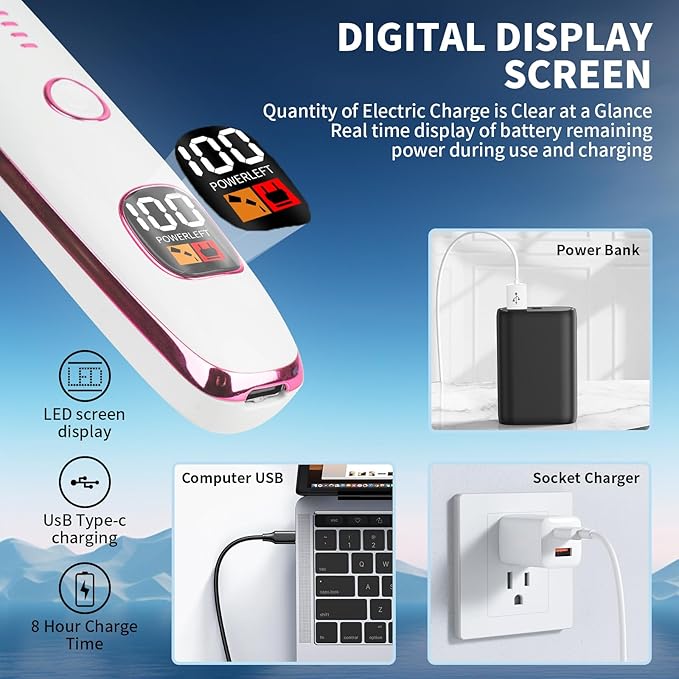 - LED Display Screen: Newly upgraded digital LED display screen allows users to monitor battery levels effortlessly. Its noise reduction design ensures quieter operation, minimizing disturbance to others. The trimmer's portable, pen-like design makes it easy to carry in bags or travel cases, while its durable ABS body resists wear and tear