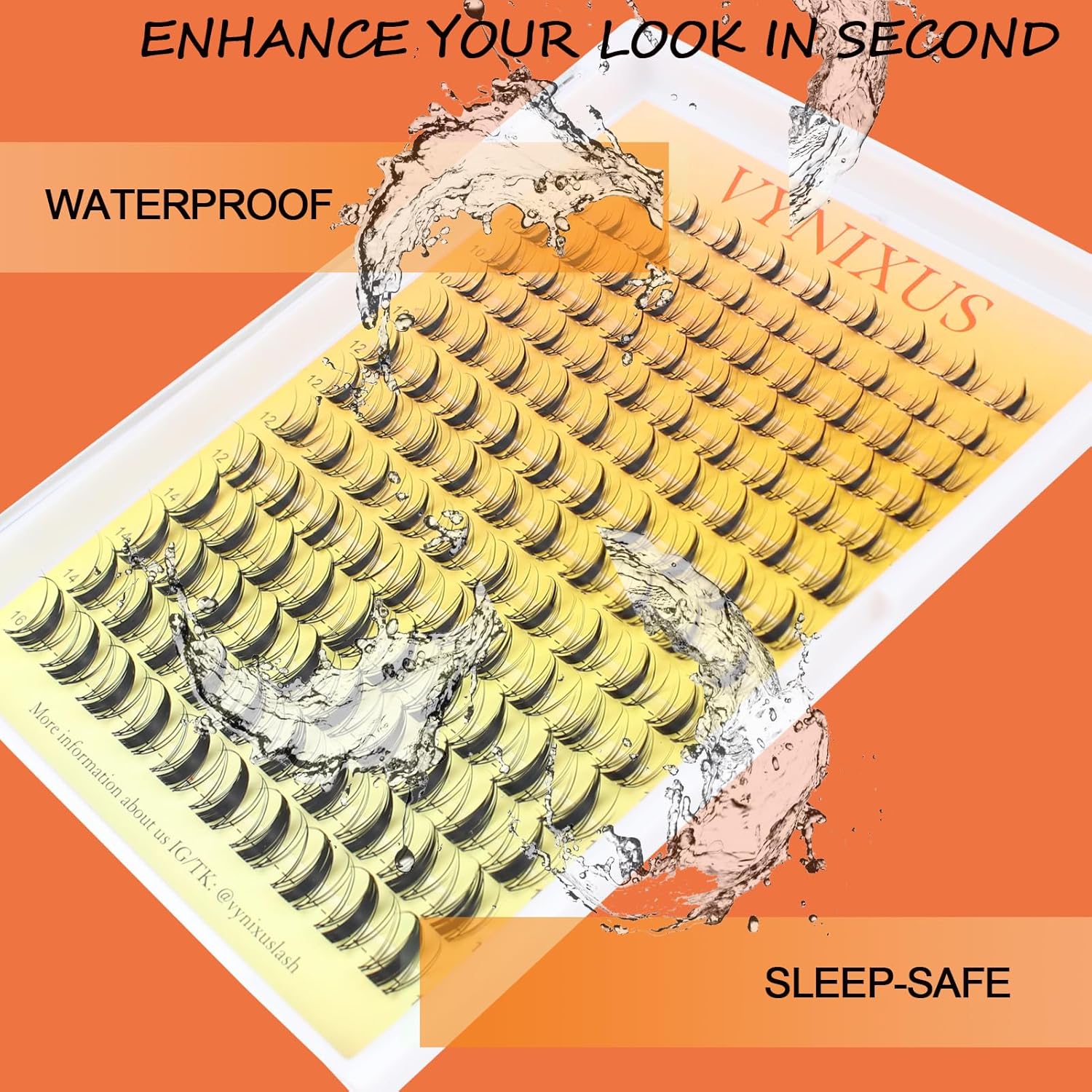 - Beauty Savings Plan: 1 box VYNIXUS lash cluster can wear 14 applications(7−day wear perset) with proper care, enjoy 100 days of glam at less than $0.20/day.