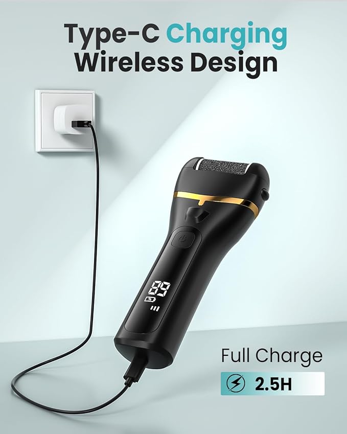 - 🔋 USB Type-C Charging & Portable Design: Quickly recharge using USB Type-C, with built-in protections to prevent overcharging. Its portable, wireless design is great for travel or on-the-go foot care—perfect for the summer season and beyond.