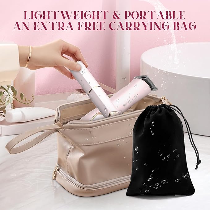 - 🌊 100% Waterproof & Travel-Ready: Rated for wet/dry use—shower safely or rinse blades under tap. Includes a velvet storage bag and packaging box for gym bags or beach vacations.