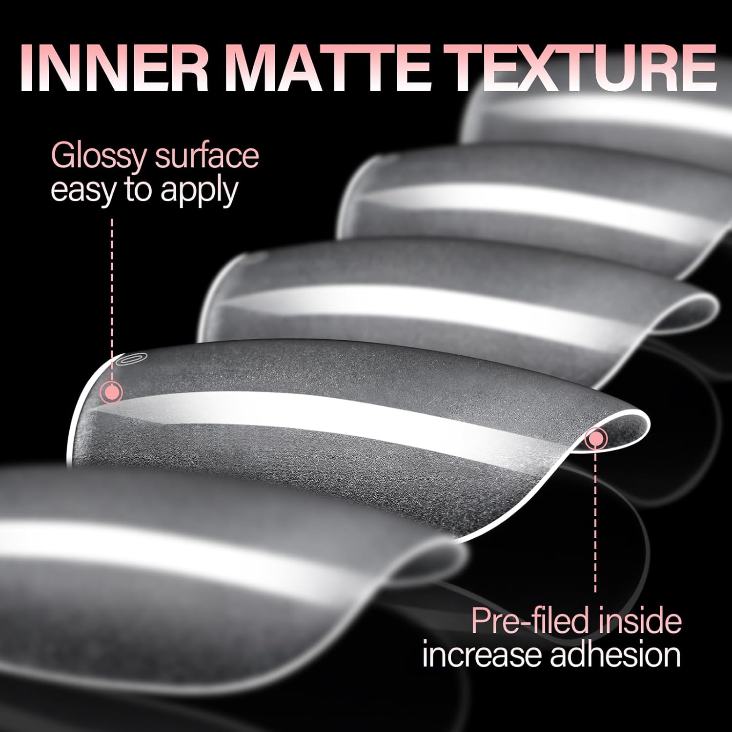 - 【AILLSA fake nails, Paired with AILLSA glue for better fit】: Our soft gel tips feature “Thin back edge, thick front edge”. The thinner back edge can make the soft nail tips fit your nails better, which will not make you feel uncomfortable. Also, the full cover matte nail tips are firmer bonding to your nails for a seamless fit with no air bubbles; The thickened front edge makes it not easy to break or bend, having longer lifespan.