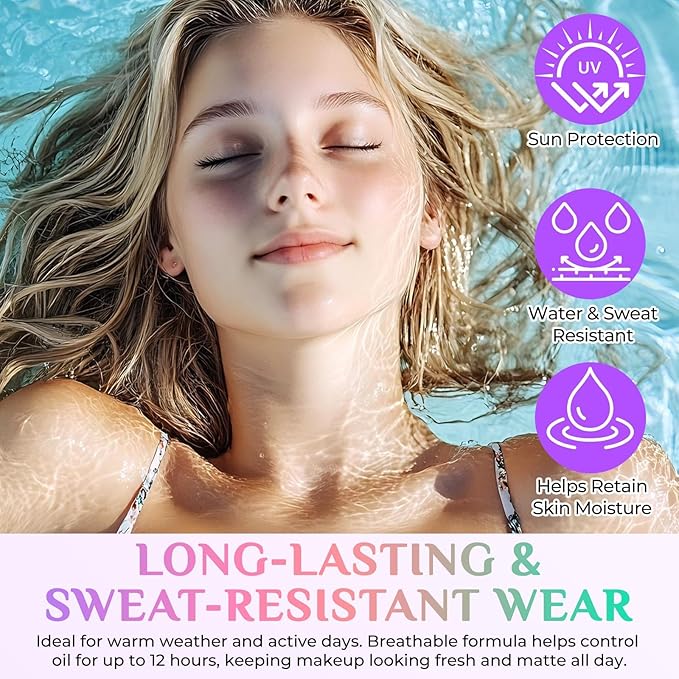 - 【Long-Lasting Sweat-Proof】Water-Resistant & Sweat-Proof formula, suitable for sports or summer use. 12-hour oil control combined with air-permeable texture to maintain a refreshing matte makeup effect all day long.