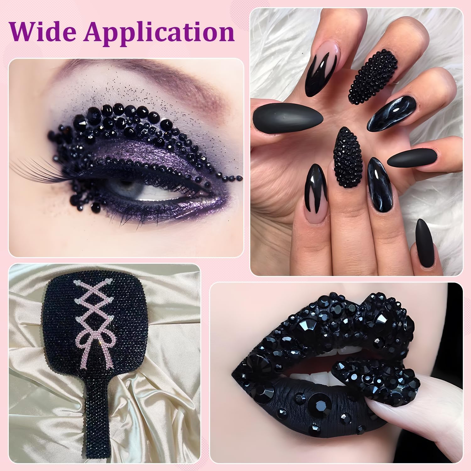 - PACKAGE CONTENT -- Include 1 box with 24 grids, featuring a variety of sizes(SS6/10/16/20/30), approx. 30000 pcs bling-out resin rhinestones (Black). 1 tweezers and 1 pickup pen are included for easily picking up of rhinestones. 1 B7000 adhesive jewels glue for jewelry making.This all-in-one bedazzler kit includes everything you need to start creating dazzling designs